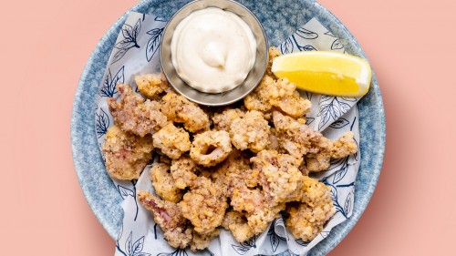 Lightly dusted deep fried squid, served with lemon & black pepper mayonnaise
