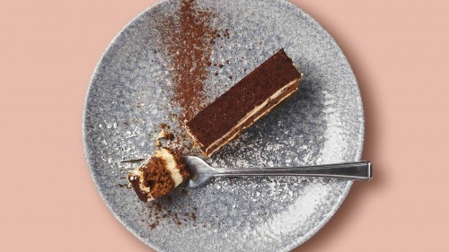 Coffee soaked sponge layered with coffee liqueur, mascarpone cream and cocoa (contains alcohol)